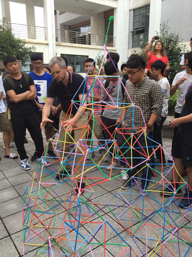 在外教的指导下,学生自己动手搭建的工程结构模型