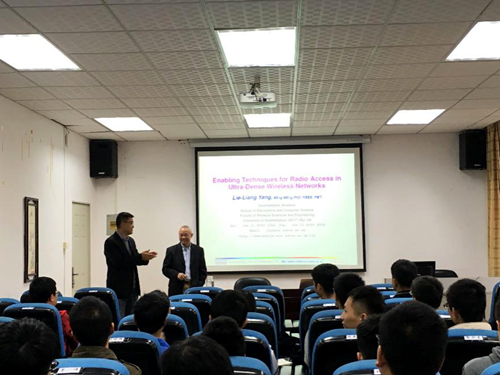 10月19日,英国南安普顿大学杨列亮教授来校访问信息工程学院,并为学院师生做题为《Enabling Techniques for Radio Access in Ultra-Dense Wireless Networks》的学术报告。信息工程学院院长赵军辉教授主持报告会。