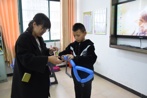 简单的数字游戏,拉近了志愿者与孩子们之间的距离;一根绳子的变幻,引起了孩子们的兴趣。志愿者们精心准备的小游戏,深深地吸引了孩子们,在聚精会神观看学习后,他们主动请求自己动手,玩得不亦乐乎?。