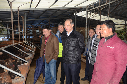 我校还拨出专项经费,购买了43头黄牛送给军屯村发展养牛产业,在走访黄牛养殖合作社时,万明详细询问了养殖户黄牛的养殖和收益情况,希望他们充分发挥自己的特长,把黄牛养殖业做好。